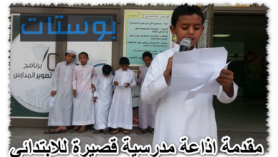 مقدمة اذاعة مدرسية قصيرة للابتدائي جاهزة وجميلة كما يوجد إذاعات على شكل قصة، هذه النوعية يحتاجها جميع المدارس بلا شك،…